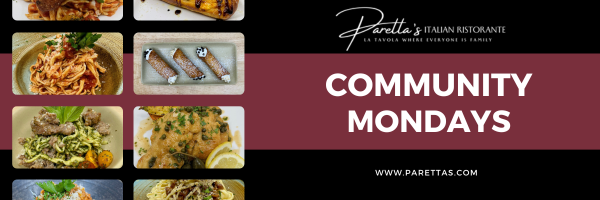 On Monday, September 29th, Paretta's Italian Ristorante is featuring our school for their weekly "Community Mondays," where 10% of their sales will be donated to a different local charity each week, and this week that is us!