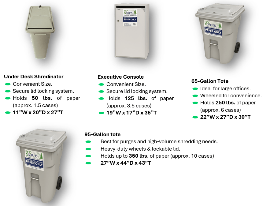 Eco Shred provides document and media destruction that's secure, certified, and community-focused. Because when it comes to protecting sensitive information, “close enough” doesn’t cut it (but our shredders will 😉)!